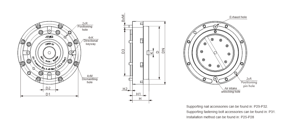 - Kaasun paine avautuu, jousen mekaaninen lukko
